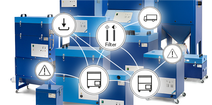 Über das Ethernet vernetzt, können die Absaug- und Filtergeräte selbsttätig Filter und Ersatzteile bestellen, eine Fehlersuche vornehmen oder Upgrades herunterladen.